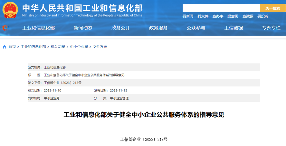 工业和信息化部关于健全中小企业公共服务体系的指导意见